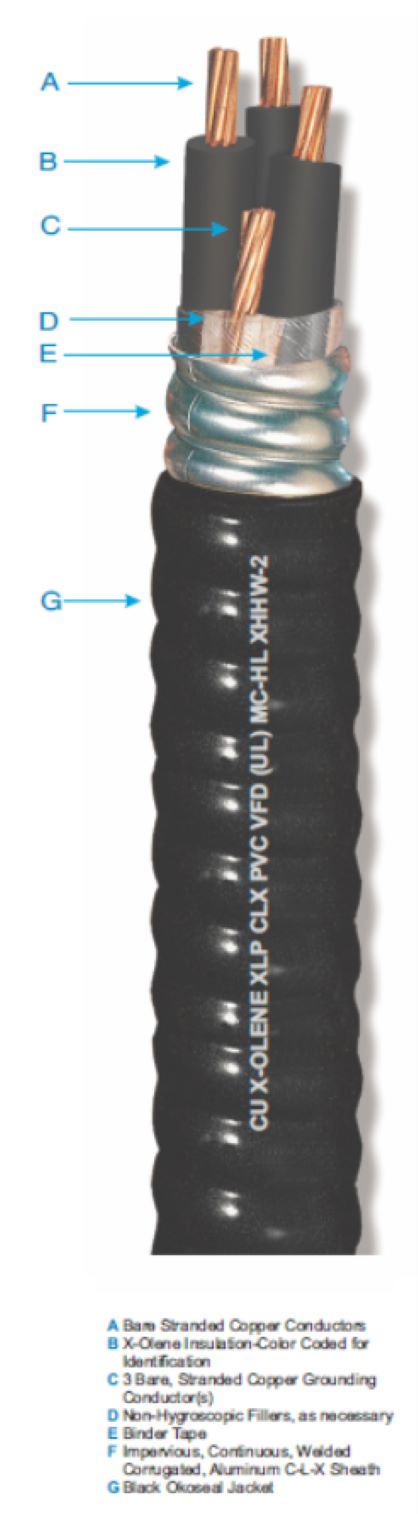 Los cables C-L-X tipo MC-HL están homologados para atmósferas explosivas Clases I, II y III, Divisiones 1 y 2, y Clase I, Zonas 1 y 2, según NEC y UL 2225.