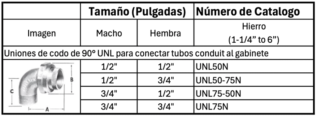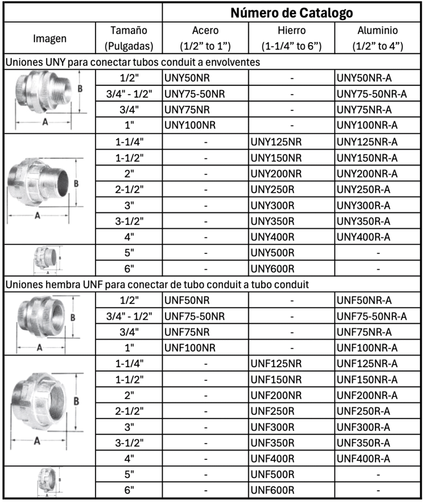 * Las uniones UNY y UNF se utilizan para unir tuberia conduit y conectarla a envolventes o encerramientos. Facilitan las modificaciones y permiten retirar las envolventes sin necesidad de girar el conduit.